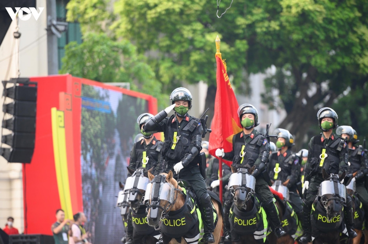 Diễu hành với kị binh của lực lượng Cảnh sát Cơ động. Ảnh: Trọng Phú/VOV |
