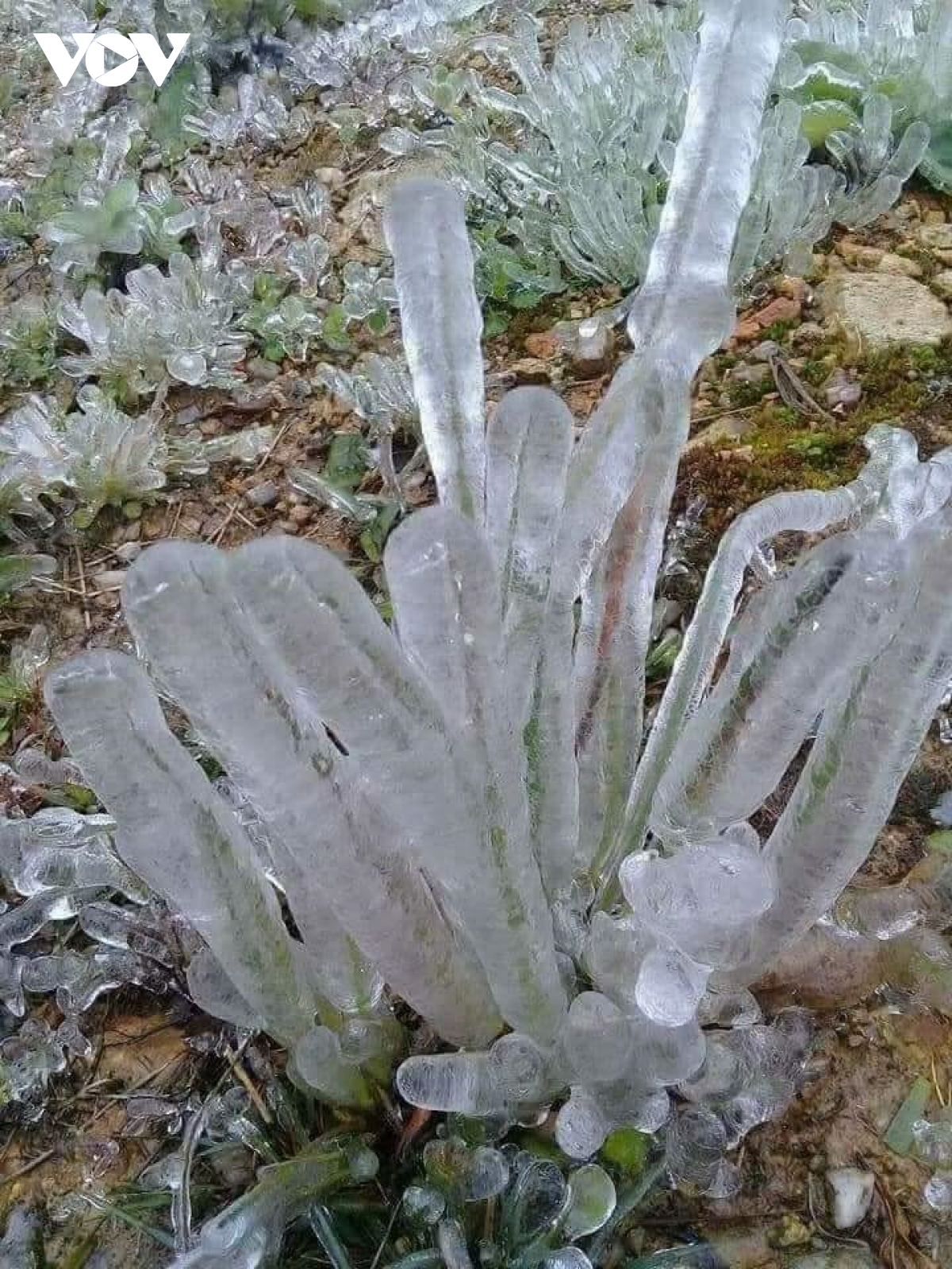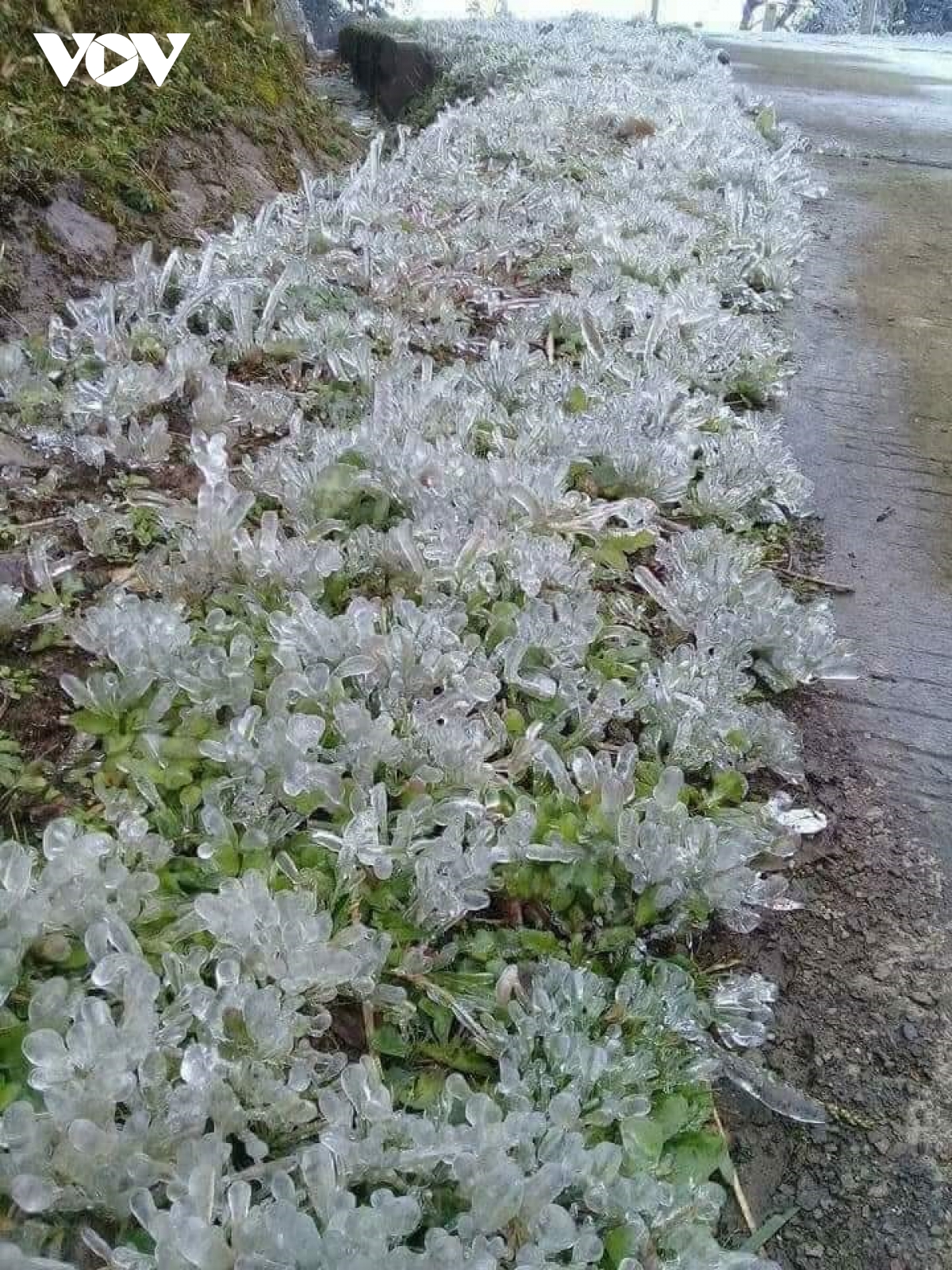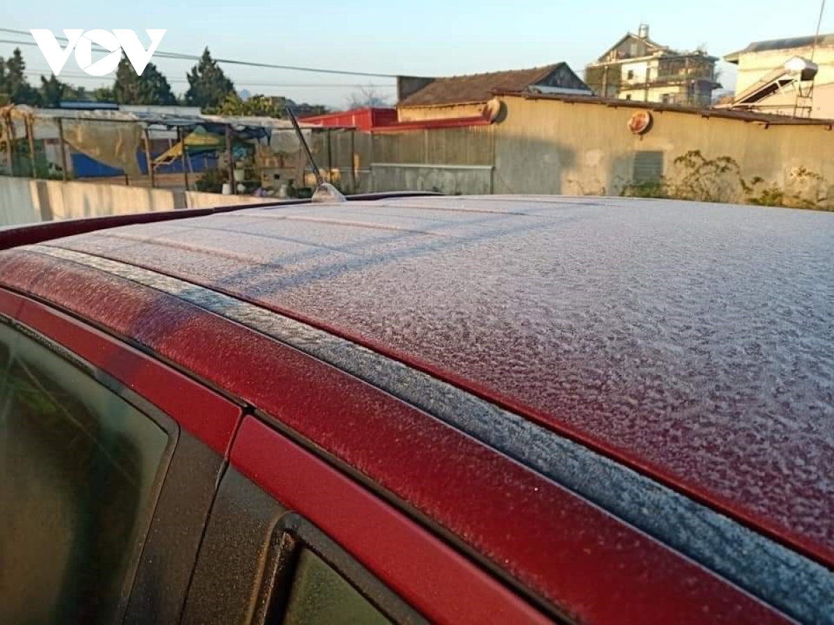 Đêm qua và sáng sớm 2/1, nhiệt độ tại một số nơi ở huyện Mộc Châu, tỉnh Sơn La giảm còn 1 độ C khiến rét buốt và xuất hiện sương muối, băng giá.