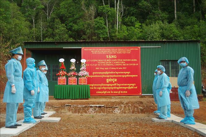 Cùng ngày, tại Cửa khẩu Bu Prăng, xã Quảng Trực, huyện Tuy Đức, lãnh đạo Bộ Chỉ huy Bộ đội Biên phòng tỉnh Đắk Nông đến tặng quà, chúc Tết 3 lực lượng gồm: Công an, Tiểu khu Quân sự, Quân cảnh Hoàng gia Campuchia tỉnh Mundulkiri, Vương quốc Campuchia. Đại tá Nguyễn Văn Lư, Chỉ huy trưởng Bộ Chỉ huy Bộ đội Biên phòng tỉnh Đắk Nông, mong muốn các lực lượng bảo vệ biên giới tỉnh Mondulkiri tiếp tục phối hợp tốt với Bộ đội Biên phòng tỉnh Đắk Nông trong quản lý bảo vệ biên giới, phòng chống dịch COVID-19, ngăn chặn các hành vi vi phạm biên giới để trốn dịch. Đại diện các lực lượng bảo vệ biên giới tỉnh Mondulkiri khẳng định sẽ tiếp tục phối hợp tăng cường quản lý, bảo vệ biên giới, phát triển tình đoàn kết, hữu nghị giữa hai bên.