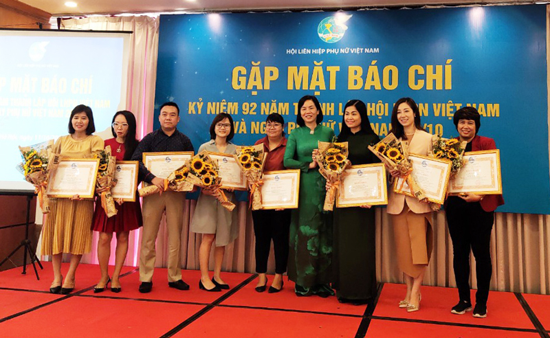 Đoàn Chủ tịch Trung ương Hội Hội Liên hiệp phụ nữ Việt Nam tặng Bằng khen cho tập thể và cá nhân có thành tích xuất sắc trong công tác tuyên truyền Đại hội đại biểu phụ nữ toàn quốc lần thứ XIII. Ảnh: hanoimoi.com.vn |