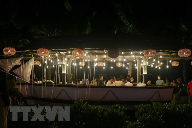 Các quầy ẩm thực phục vụ người dân và du khách khi đến vui chơi giải trí tại bãi biển đêm Mỹ An. Ảnh: Trần Lê Lâm/TTXVN |