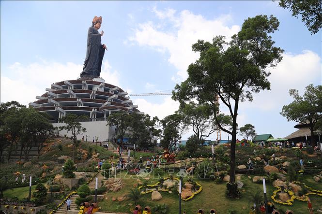 Tượng Phật đồng cao nhất châu Á trên đỉnh Núi Bà Đen. Ảnh tư liệu: Lê Đức Hoảnh/TTXVN |