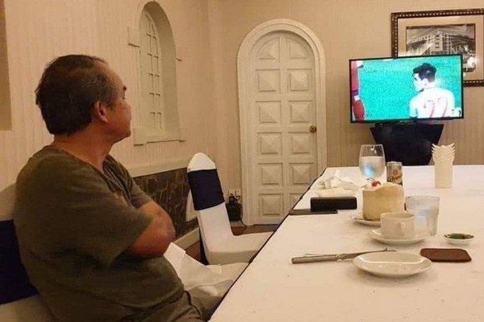 Đây có lẽ là hình ảnh được chia sẻ nhiều nhất trên mạng xã hội ngay sau khi đội tuyển U22 Việt Nam giành chiến thắng. Hình ảnh ông Đoàn Nguyên Đức (bầu Đức) lặng lẽ ăn mừng chiến thắng được chia sẻ trên các diễn đàn mạng với những lời cảm ơn chân thành nhất. Bầu Đức chính là người đã tìm kiếm thông tin về huấn luyện viên Park Hang-seo. Ông cũng là người đứng ra trả toàn bộ lương cho ông thầy người Hàn Quốc trong nhiều năm (từ tháng 9/2017 đến tháng 1/2020).
