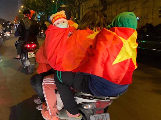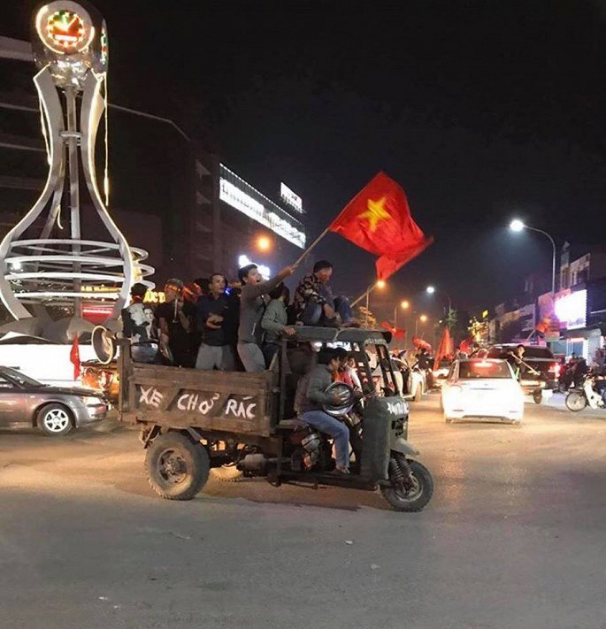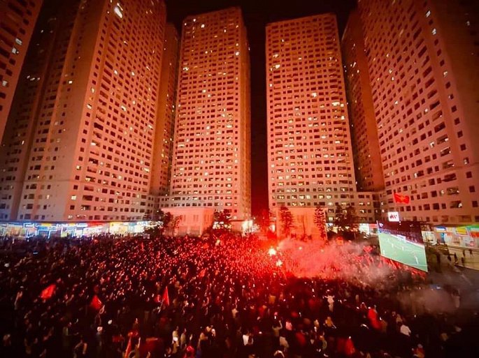 Cư dân Linh Đàm ăn mừng chiến thắng của đội tuyển nước nhà.