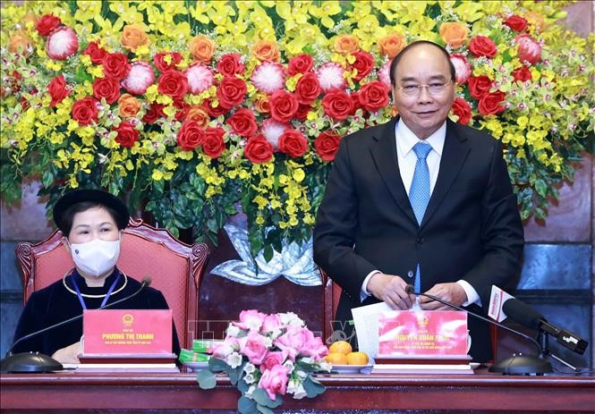 Chủ tịch nước Nguyễn Xuân Phúc phát biểu. Ảnh: Thống Nhất/ TTXVN |