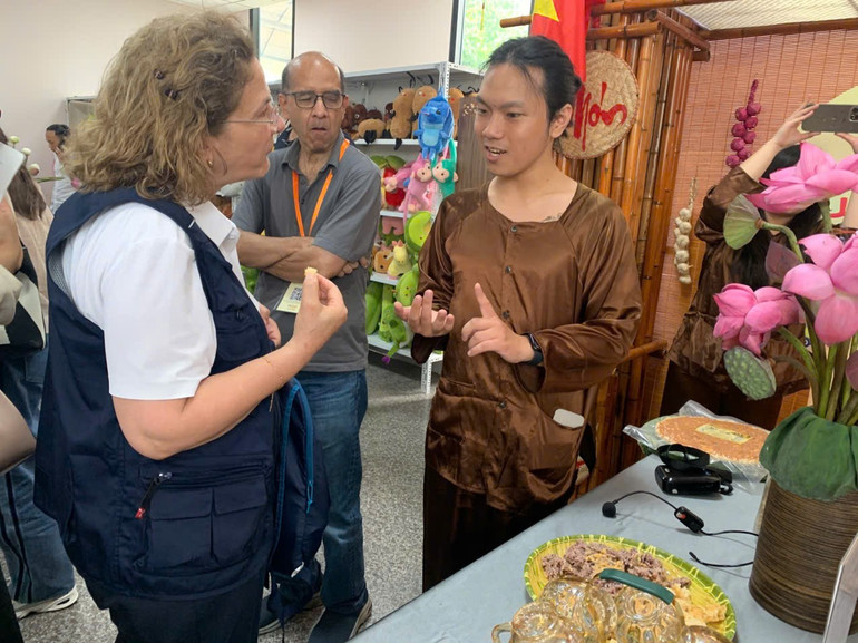 Phó Tổng Giám đốc FAO Beth Bechdol (áo xanh) đánh giá cao nỗ lực của Việt Nam trong việc xây dựng mô hình OCOP trở thành một chương trình phát triển nông thôn hiệu quả, có khả năng lan tỏa quốc tế. |