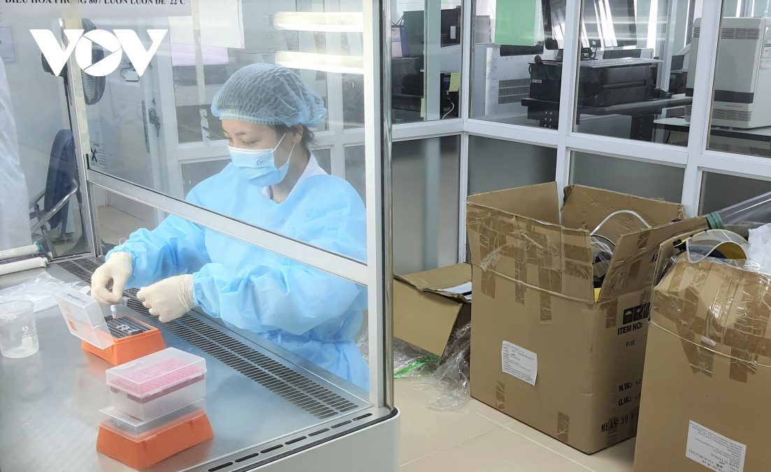 Cán bộ đang thực hiện bước đầu cho công tác xét nghiệm. Ảnh: VOV |