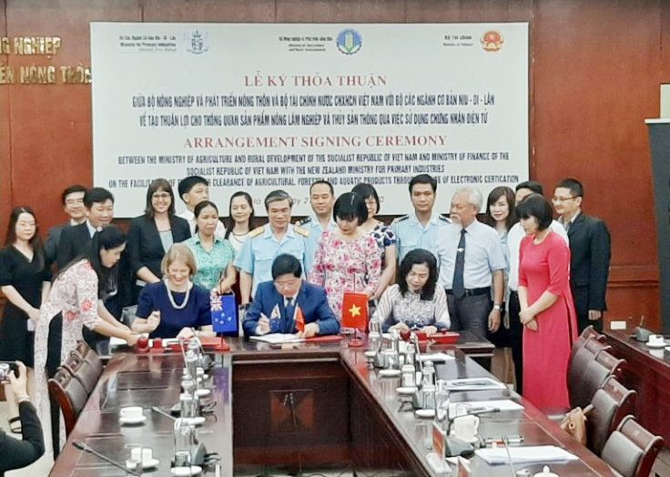 Tăng cường giao thương các sản phẩm nông lâm nghiệp, thủy sản và thực phẩm đóng vai trò cốt yếu mà Việt Nam và New Zealand luôn xác định, nhằm đảm bảo hợp tác thương mại và kinh tế giữa New Zealand và Việt Nam ngày một lớn mạnh. Để đánh dấu một bước tiến mới, trong hợp tác thương mại và nông nghiệp song phương nhân kỷ niệm 45 năm thiết lập quan hệ, Việt Nam và New Zealand ngày 21/07 đã ký kết thỏa thuận hợp tác nhằm thành lập hệ thống chứng nhận điện tử song phương đầu tiên dành cho các sản phẩm thực phẩm và nông - lâm nghiệp thông quan.