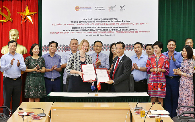 Lễ ký kết thỏa thuận giữa Việt Nam và New Zealand về hợp tác giáo dục nghề nghiệp. Lễ ký các thỏa thuận hợp tác song phương trên các lĩnh vực tài chính, giáo dục, thương mại, nông nghiệp diễn ra ngay trước cuộc hội đàm trực tuyến giữa Thủ tướng Nguyễn Xuân Phúc và Thủ tướng Jacinda Arden nhằm nâng tầm quan hệ đối tác chiến lược ngày 22/07/2020 |