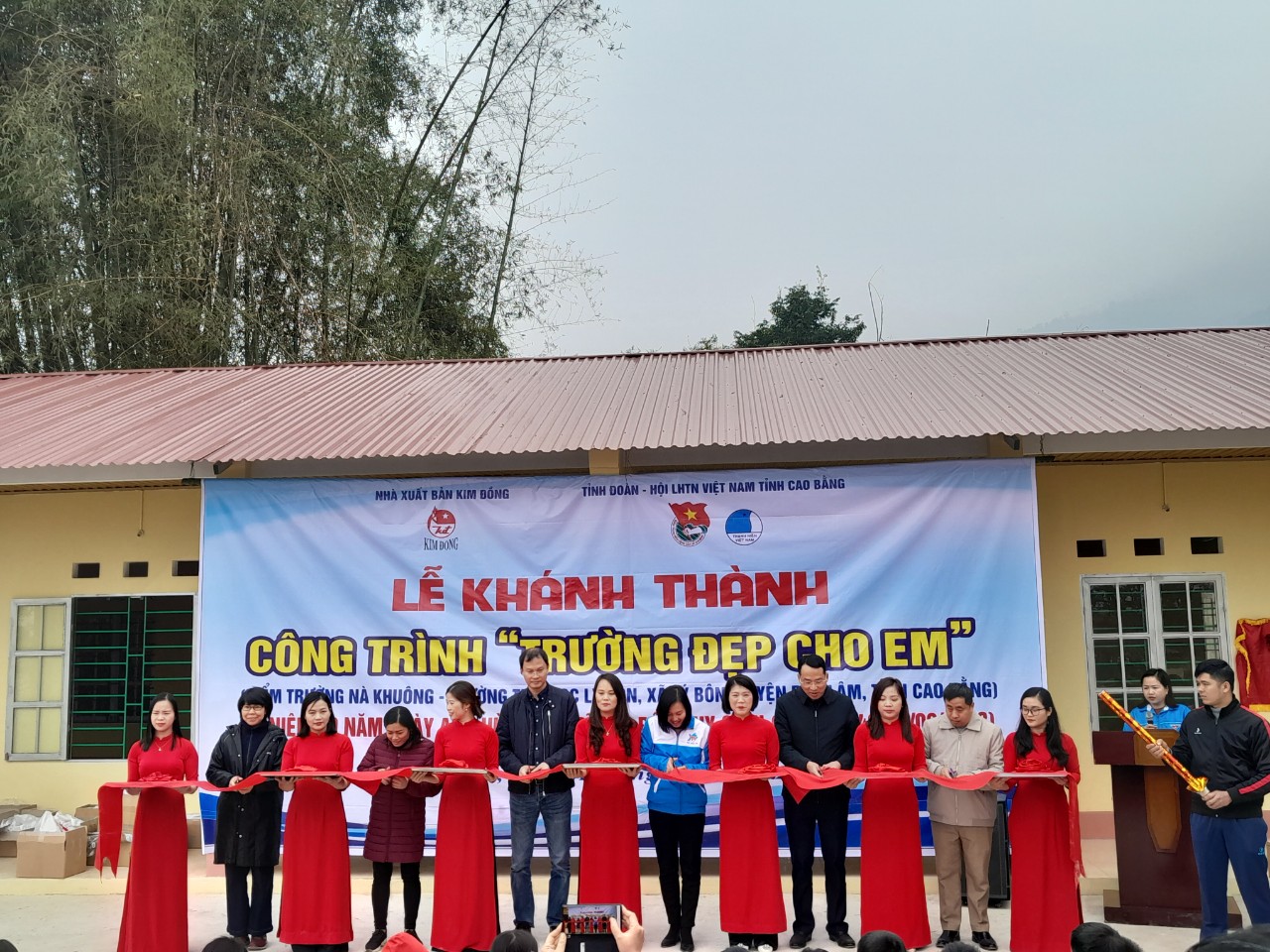 Nhà xuất bản Kim Đồng và Tỉnh đoàn thanh niên Cao Bằng vừa tổ chức khánh thành công trình “Trường đẹp cho em” tại điểm trường Nà Khuông, trường Tiểu học Lý Bôn, xã Lý Bôn, huyện Bảo Lâm, tỉnh Cao Bằng.
