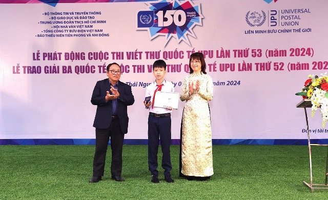 Hôm qua (5/1), tại tỉnh Thái Nguyên, Bộ Thông tin và Truyền thông phối hợp với Bộ Giáo dục và Đào tạo, Trung ương Đoàn, Hội Nhà văn Việt Nam và Tổng Công ty Bưu điện Việt Nam tổ chức lễ phát động cuộc thi Viết thư quốc tế UPU lần thứ 53 (năm 2024) và trao giải Ba quốc tế Cuộc thi Viết thư Quốc tế UPU lần thứ 52 (năm 2023). Cuộc thi Viết thư Quốc tế UPU lần thứ 53 có chủ đề: “Trong hành trình 150 năm qua, Liên minh Bưu chính Thế giới (UPU) đã phục vụ hơn 8 thế hệ người dân toàn cầu. Từ đó đến nay, thế giới đã có nhiều thay đổi. Hãy viết thư gửi các thế hệ tương lai để nói về thế giới mà bạn hy vọng họ được kế thừa”. Chủ đề cuộc thi gắn kỷ niệm 150 năm thành lập Liên minh Bưu chính Thế giới (UPU) trong năm nay.