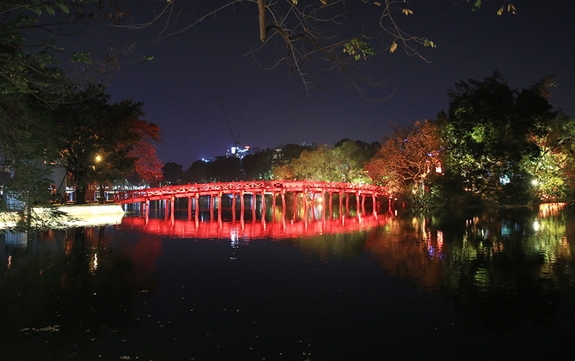 Một góc Hồ Gươm được trang trí nhân dịp Tết Nguyên đán Tân Sửu. Ảnh: Thế Truyền/qdnd.vn |