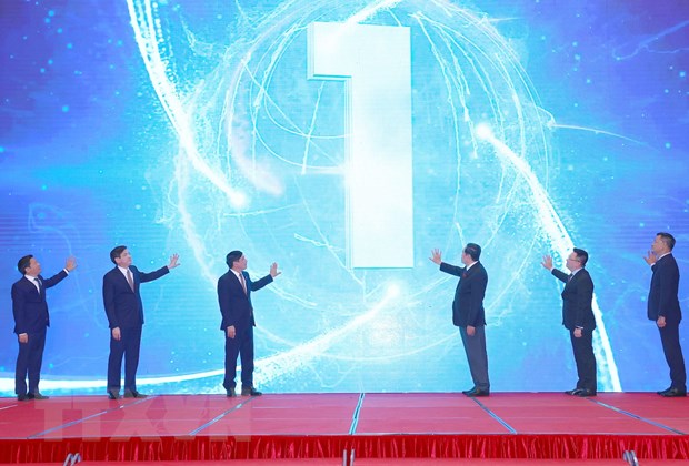 Ông Trần Thanh Mẫn, Ủy viên Bộ Chính trị, Phó Chủ tịch Thường trực Quốc hội, Trưởng ban Chỉ đạo Giải Diên Hồng và đại biểu thực hiện nghi thức phát động Giải Diên Hồng lần thứ nhất. Ảnh: Doãn Tấn/TTXVN |