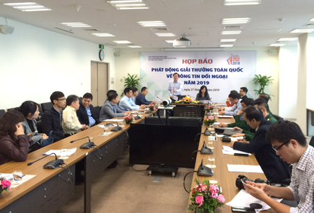 Sáng 27/11, tại Hà Nội, Ban Chỉ đạo Công tác thông tin đối ngoại, Ban Tuyên giáo Trung ương và Đài truyền hình Việt Nam tổ chức họp báo phát động Giải thưởng toàn quốc về thông tin đối ngoại năm 2019. Giải thưởng nhằm tiếp tục ghi nhận và tôn vinh những tác giả, tác phẩm báo chí và sách xuất sắc trong lĩnh vực thông tin đối ngoại; đồng thời góp phần quảng bá, lan tỏa những thành tựu chính trị - đối ngoại, kinh tế, văn hoá - xã hội của đất nước; giới thiệu Việt Nam năng động, chủ động, tích cực hội nhập quốc tế và là thành viên tích cực, có trách nhiệm của cộng đồng quốc tế.