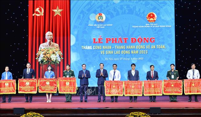 Lễ Phát động Tháng Công nhân - Tháng hành động An toàn, vệ sinh lao động năm 2023 - Ảnh: TTXVN |