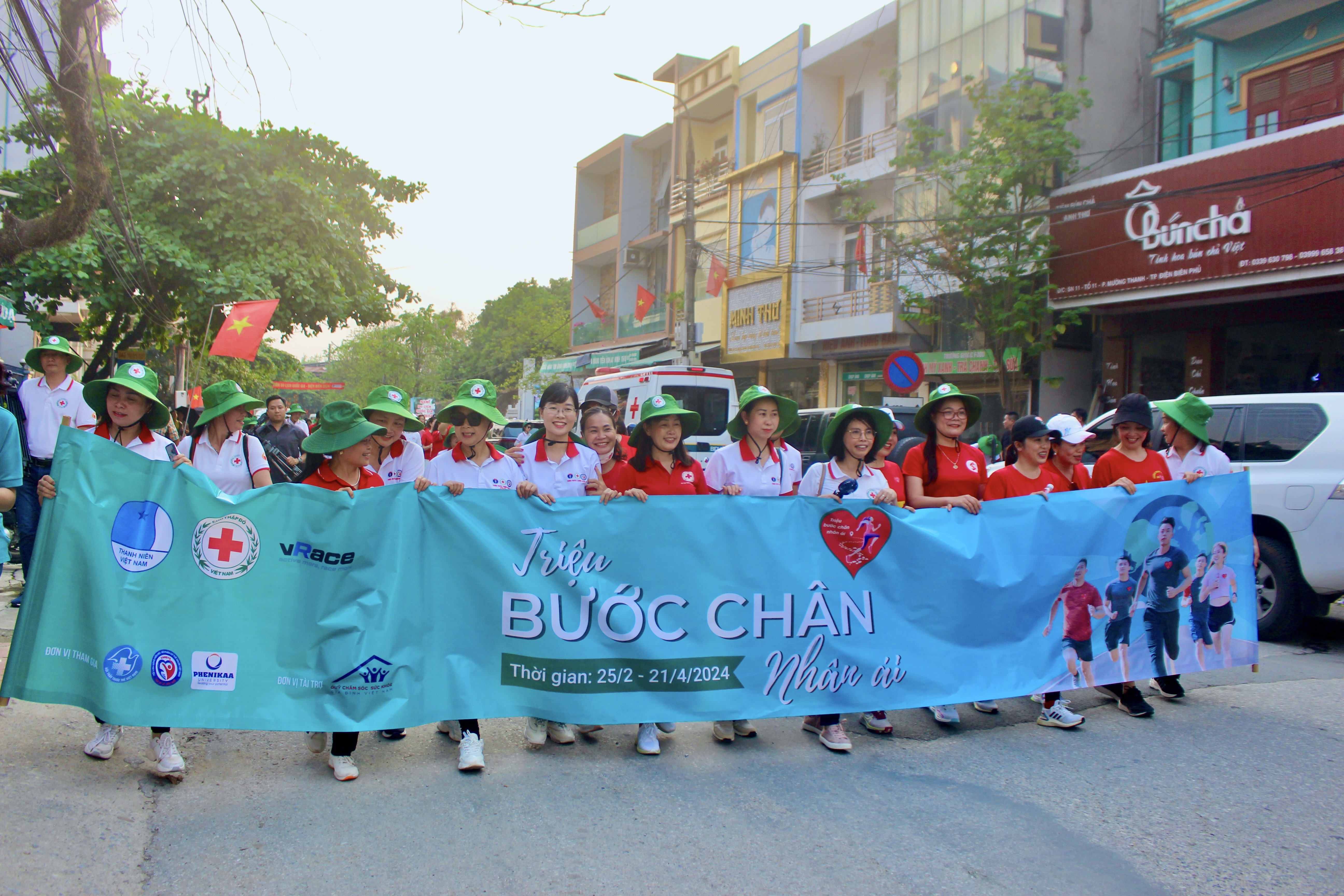Các vận động viên, tình nguyện viên, Hội viên Chữ thập đỏ đã cùng nhau hoàn thành chặng cuối của Chiến dịch tại thành phố Điện Biên Phủ, tỉnh Điện Biên. Ảnh: nhandaoonline.vn |
