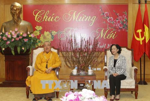 Nhân dịp chuẩn bị đón Tết Nguyên đán Mậu Tuất 2018, sáng 9/2, tại Hà Nội, Trưởng ban Dân vận Trung ương Trương Thị Mai tiếp Đoàn đại biểu Giáo hội Phật giáo Việt Nam do Hòa thượng Thích Thanh Nhiễu, Phó Chủ tịch Thường trực Hội đồng Trị sự Giáo hội Phật giáo Việt Nam dẫn đầu.