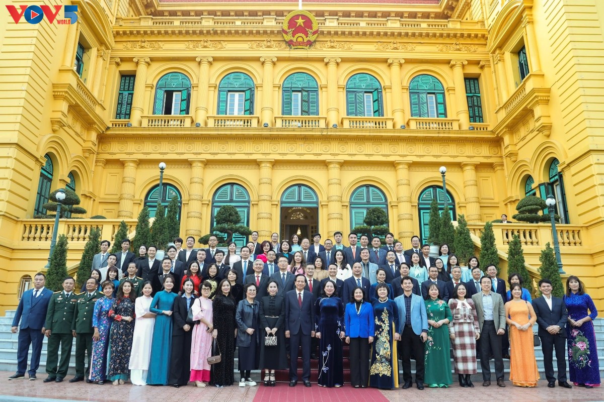 Phó Chủ tịch nước Võ Thị Ánh Xuân, Chủ tịch Hội đồng Bảo trợ Quỹ Bảo trợ trẻ em Việt Nam với các đại biểu. Ảnh: VOV |