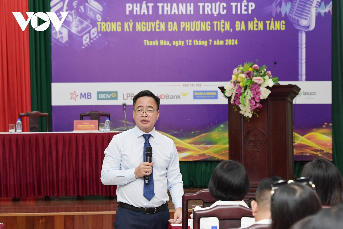 Đây là chủ đề Hội thảo “Phát thanh trực tiếp trong kỷ nguyên đa phương tiện, đa nền tảng” diễn ra chiều qua (12/7), trong khuôn khổ Liên hoan Phát thanh toàn quốc lần thứ XVI, tại tỉnh Thanh Hóa. Nhà báo Phạm Mạnh Hùng, Phó Tổng Giám đốc, Chủ tịch Liên chi hội Nhà báo chủ trì hội thảo.
