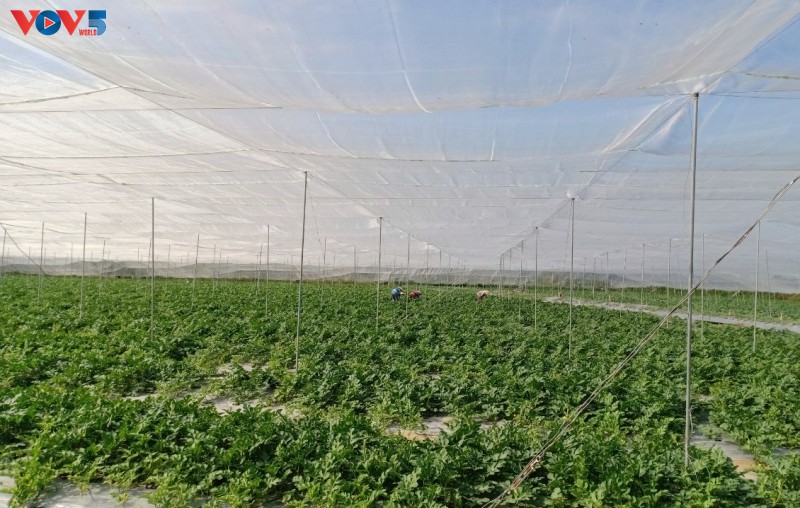 Mô hình trồng dưa lưới theo công nghệ Israel. Ảnh: Phạm Hải/ VOV |