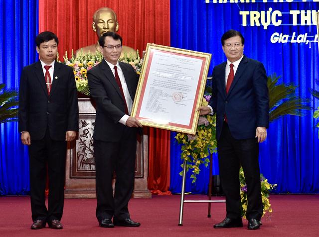 Tối 25/09, tại thành phố Pleiku, Phó Thủ tướng Trịnh Đình Dũng trao Quyết định của Thủ tướng Chính phủ công nhận thành phố Pleiku đạt tiêu chí đô thị loại I trực thuộc tỉnh Gia Lai.