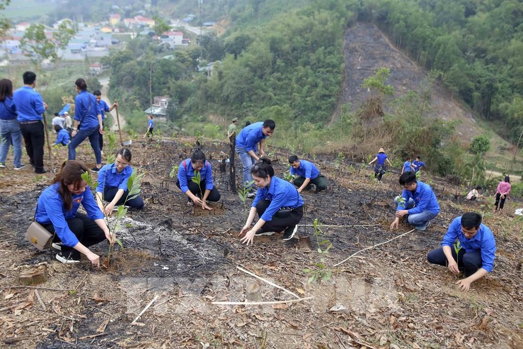 Đoàn viên, thanh niên TTXVN trồng cây hưởng ứng "Tết trồng cây" năm 2021 và chương trình trồng 1 tỷ cây xanh. Ảnh: Tuấn Đức/TTXVN |