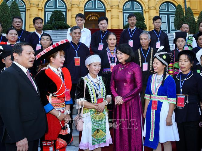 Chiều 29/10, tại Phủ Chủ tịch, Phó Chủ tịch nước Đặng Thị Ngọc Thịnh tiếp Đoàn đại biểu người dân tộc thiểu số tiêu biểu tỉnh Cao Bằng nhân dịp đoàn về thăm Thủ đô Hà Nội.