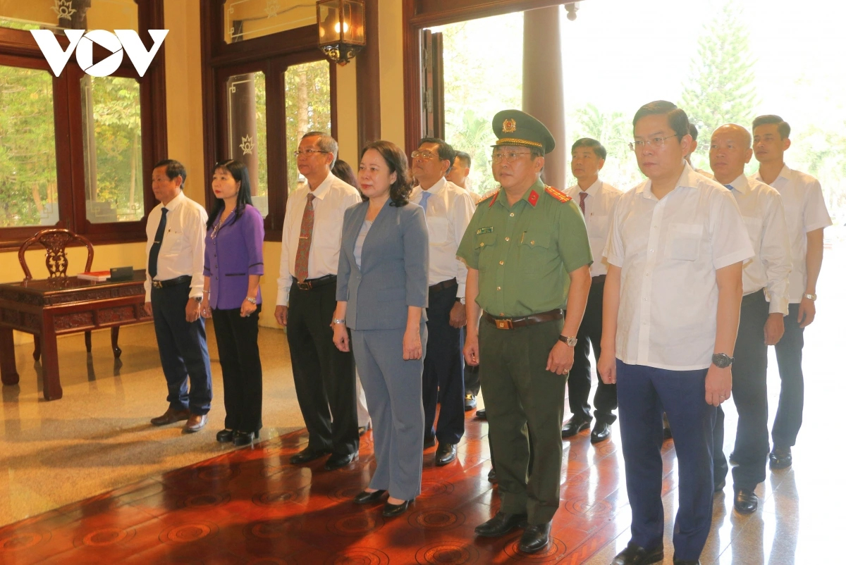 Phó Chủ tịch nước Võ Thị Ánh Xuân và lãnh đạo tỉnh An Giang dâng hương tưởng nhớ Chủ tịch Tôn Đức Thắng.Ảnh: Phan Ánh/VOV-ĐBSCL |