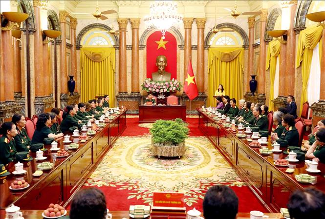 Nhân kỷ niệm 73 năm Ngày truyền thống Ngành Vận tải quân sự (18/6/1949-18/6/2022), sáng 17/6, tại Phủ Chủ tịch, Phó Chủ tịch nước Võ Thị Ánh Xuân tiếp Đại đội nữ lái xe Trường Sơn.
