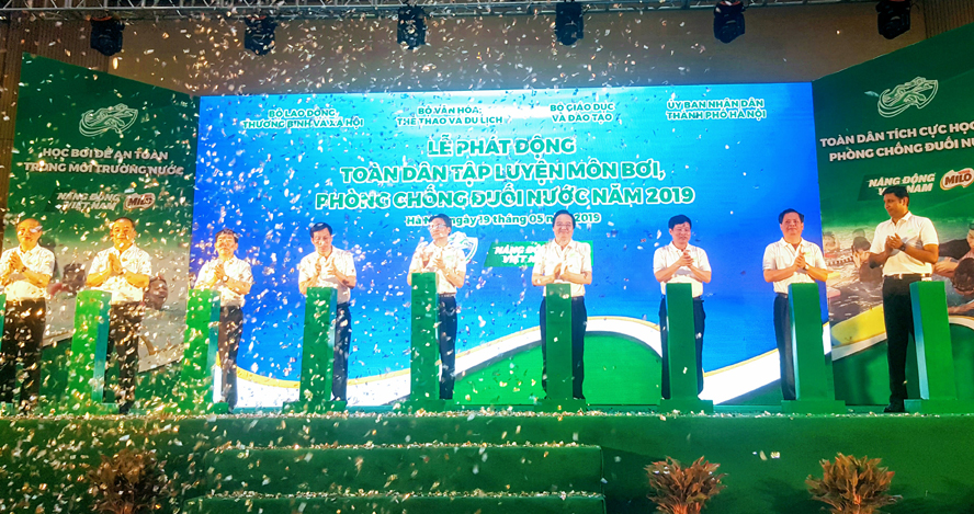 Ngày 19/5, tại Trung tâm văn hóa, thông tin và thể thao quận Long Biên (Hà Nội), diễn ra lễ phát động toàn dân tập luyện môn bơi, phòng chống đuối nước năm 2019 trên toàn quốc.
