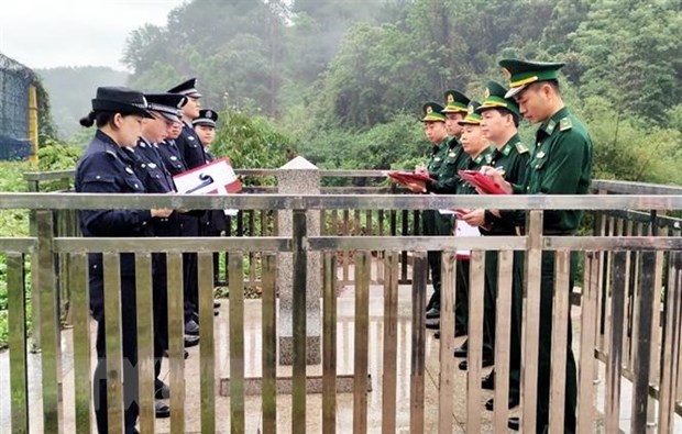 Lực lượng chức năng hai bên thông báo về tình hình quản lý, bảo vệ biên giới của mỗi bên. Ảnh: TTXVN |