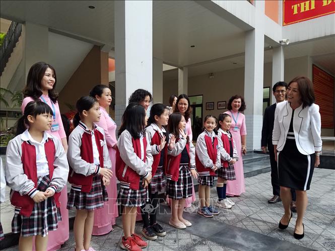 Nhân dịp Bộ trưởng Ngoại giao Nhật Bản Motegi Toshimitsu thăm chính thức Việt Nam, chiều 6/1, Phu nhân Bộ trưởng Ngoại giao Nhật Bản, bà Motegi Emi, đến thăm trường Tiểu học Chu Văn An (Hà Nội).