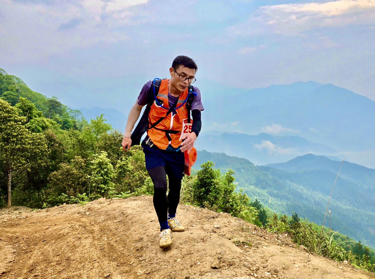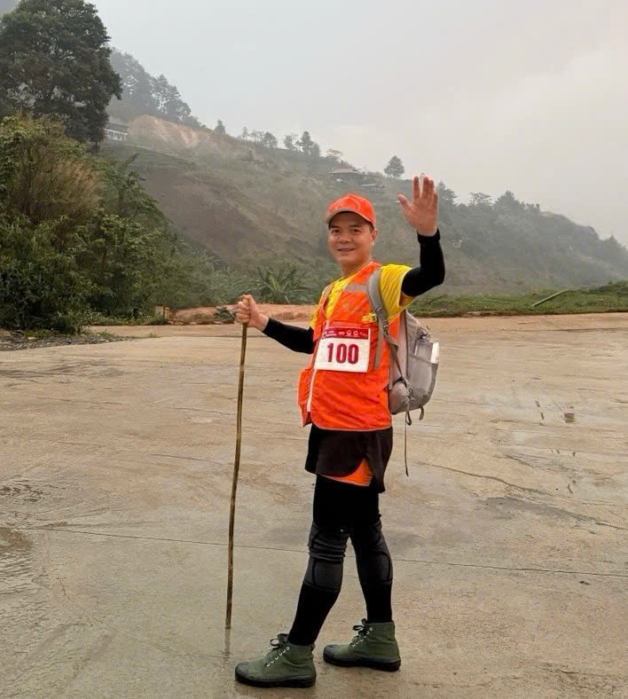 Nhà báo Vũ Hải Việt trong hành trình Chinh phụ đỉnh Tà Xùa thông qua Giải leo núi “Bước chân trên mây” lần thứ 2 tại Yên Bái. Ảnh nvcc. |
