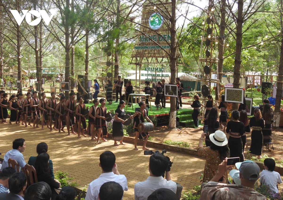 Người dân và du khách trải nghiệm văn hóa cồng chiêng. Ảnh: VOV |