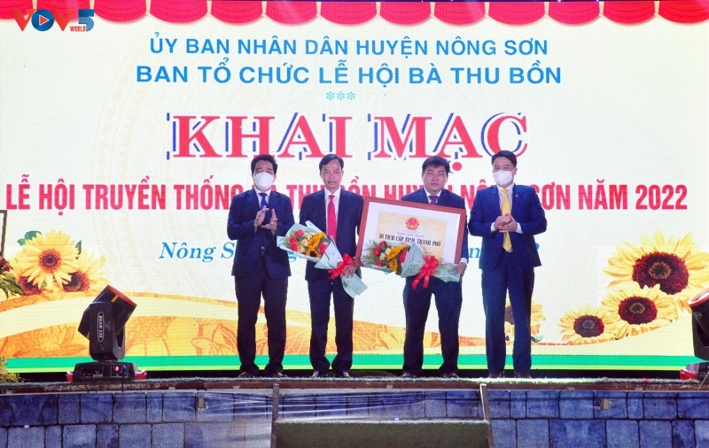 Tại Lễ khai mạc Lễ hội Bà Thu Bồn năm 2022, UBND tỉnh Quảng Nam đã trao Bằng xếp hạng Di tích lịch sử cấp tỉnh Dinh Bà Thu Bồn cho huyện Nông Sơn.