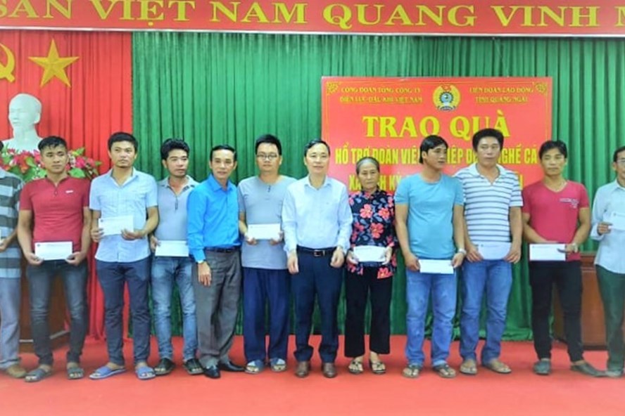 LĐLĐ tỉnh Quảng Ngãi phối hợp với CĐ Tổng Công ty Điện lực dầu khí Việt Nam trao 38 suất quà cho ngư dân khó khăn. Ảnh: Hoài Thưởng) |