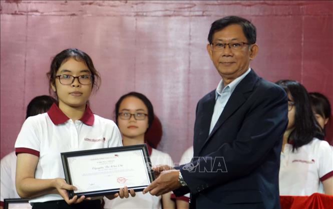 Trao học bổng Lương Văn Can trong năm học 2019 - 2020 cho các sinh viên có thành tích xuất sắc - Ảnh: Thu Hoài /TTXVN |