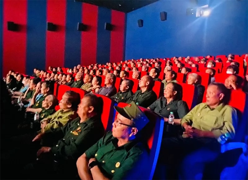 Các cựu chiến binh xem Mưa đỏ - Bộ phim do điện ảnh quân đội sản xuất. |