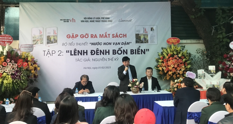 Sáng nay (01/02), tại Hà Nội, Hội đồng Lý luận, phê bình văn học, nghệ thuật Trung ương phối hợp với Nhà xuất bản Văn học và Công ty Cổ phần Văn hóa và Truyền thông Liên Việt tổ chức giới thiệu tập 2 trong bộ tiểu thuyết "Nước non vạn dặm" với tên gọi "Lênh đênh bốn biển" của nhà văn Nguyễn Thế Kỷ.