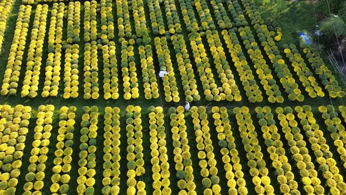 Những ngày giáp Tết Nguyên đán Ất Tỵ, những cánh đồng hoa của huyện Chợ Lách, tỉnh Bến Tre, nhộn nhịp bởi sự tất bật, hối hả của những người nông dân và dòng người thăm quan, mua hoa.