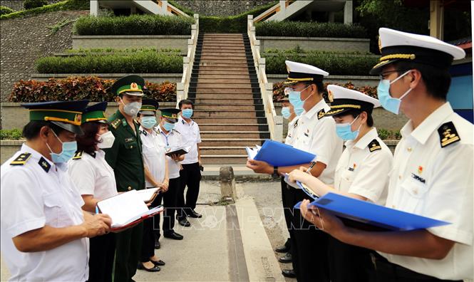 Lực lượng Kiểm dịch hai bên trao đổi tại cửa khẩu. Ảnh: TTXVN |