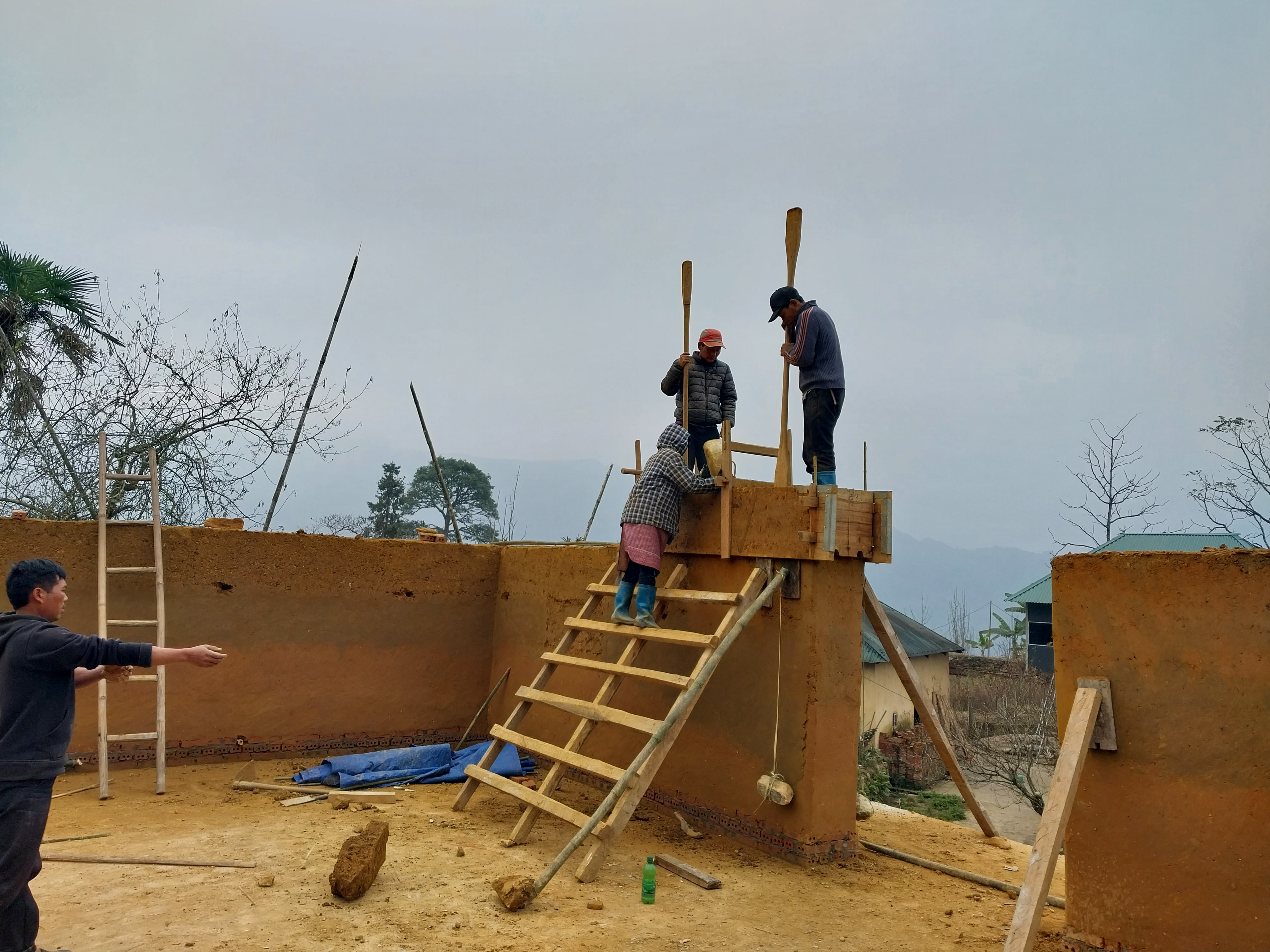 Nhiều hộ dân xây nhà truyền thống trình tường để làm du lịch. |