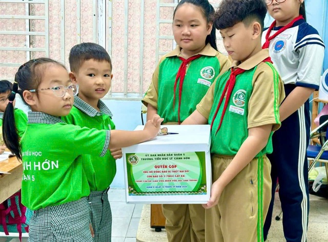 Ảnh minh hoạ: Học sinh trường Tiểu học Lý Cảnh Hớn, quận 5, TPHCM ủng hộ đồng bào miền Bắc bị ảnh hưởng bởi bão lũ. Nguồn: chinhphu.vn |