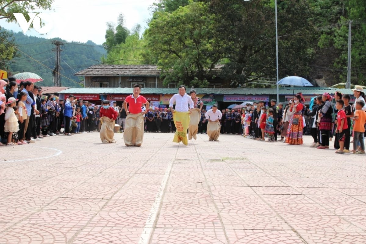 (VOV5) - Trong khuôn khổ các hoạt động chào mừng 77 năm Quốc khánh 2/9, tại huyện vùng cao Mù Cang Chải, tỉnh Yên Bái đã diễn ra nhiều hoạt động văn hóa. Một trong những hoạt động sôi nổi, thu hút đông đảo người dân tham gia, theo dõi là các môn thể thao dân tộc và trò chơi truyền thống của bà con dân tộc Mông được tổ chức tại sân vận động Mù Cang Chải như: ném còn, bịt mắt đánh trống, đi cà kheo, kéo co, đẩy gậy…Các hoạt đông tạo nên không khí đoàn kết, vui tươi, phấn khởi, góp phần làm phong phú thêm đời sống văn hóa tinh thần cho đồng bào vùng cao.
