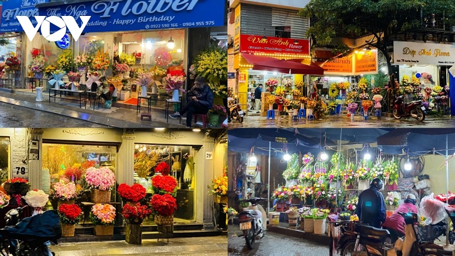 Các cửa hàng hoa tươi bày bán đa chủng loại, rực rỡ sắc màu phục vụ khách hàng ngày Valentine 2022. Ảnh: VOV |
