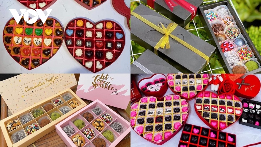 Sản phẩm socola handmade được các chủ hàng trang trí, tạo kiểu rất đẹp mắt thu hút sự tìm kiếm, sắn đón của các bạn trẻ. Ảnh: VOV |
