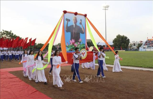 Nghi thức rước ảnh chân dung Bác Hồ tập thể dục diễu hành tại Lễ khai mạc Đại hội. Ảnh: TTXVN |