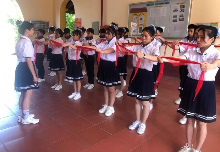 Đội dự thi của Hội đồng Đội huyện Cờ Đỏ tham gia phần thi bắt buộc Nghi thức Đội - Ảnh Q.Thái |