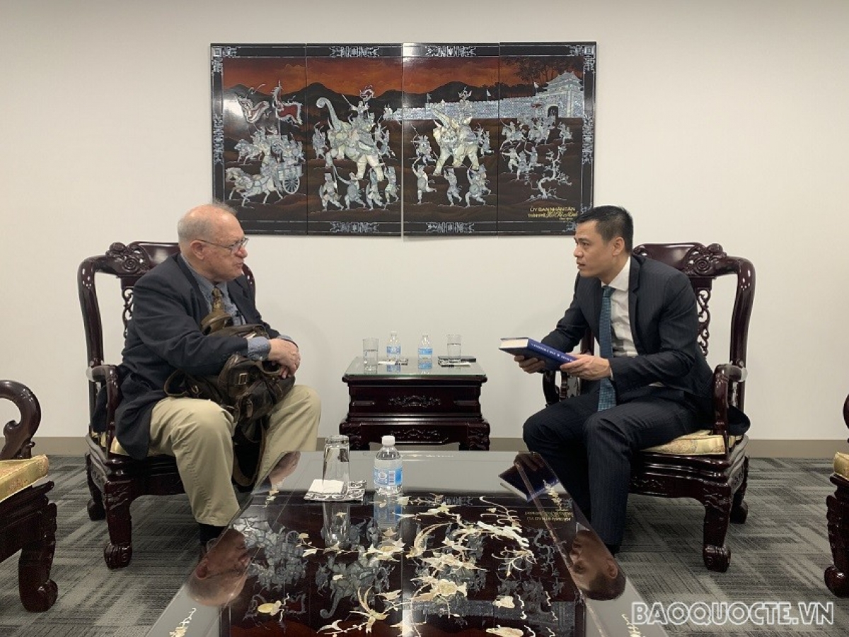 Nhân dịp này, Đại sứ Đặng Hoàng Giang cũng trao đổi một số ý tưởng về các hoạt động kỷ niệm 45 năm Việt Nam gia nhập Liên hợp quốc (9/1977 - 9/2022) và 50 năm Hiệp định Paris về hòa bình cho Việt Nam được ký kết (1/1973 - 1/2023).