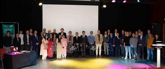 Các đại biểu tham dự lễ kỷ niệm 25 năm hợp tác giữa Trường Đại học Khoa học ứng dụng Saxion với các trường đại học của Việt Nam. Ảnh: TTXVN |